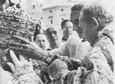 Pope John XXIII, the Vicar of Christ, receives the three-tiered crown of gold, silver and diamonds. Yet Jesus Christ wore a crown of thorns.