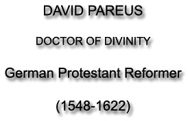 David Pareus was born of parents of good rank. At age fourteen, he was sent to study in Hirschberg. His tutor was impressed with David’s ingenuity and promise. The chief Magistrate took a liking to him after hearing the funeral oration David gave at his son’s funeral. For two years David took his meals with the Magistrate’s family, becoming fast friends with his tutor. Then a falling out occurred between the schoolmaster and the Lutheran pastor. David’s schoolmaster taught his students that Christ’s body ascended to Heaven there to remain until His coming to Judgment, so that in the Sacrament one feeds on His Body only spiritually by faith. This resulted in the schoolmaster being banished from the city. Returning home, David’s father was informed by others that David himself had been infected with the schoolmaster’s errors. This caused his father to disinherit him, forcing David to seek his fortune in the German Palatinate. There, in Heidelberg, he entered the College of Sapience, thanks to the generosity of his former schoolmaster, where he studied under such luminaries as Ursinus and Zanchius. After receiving a general education, he undertook the study of Divinity, preparing himself for the ministry. After several preaching tours in German villages, as well as years of lecturing at Heidelberg, in 1587 Pareus was named Master of the College of Sapience in the University, where he earned his doctorate. In 1594, a Convention of German States was held because the Lutherans accused the University professors of holding opinions neither conforming to the Scriptures, Augustine’s Confession, nor to their own Catechism [Heidelberg]. But Pareus, the appointed spokesman, easily overcame the arguments of the Lutherans, vindicating his comrades. In 1596, he was made Professor of the Old Testament, and in 1602, he was named Professor of the New Testament. Pareus’ fame increased, bringing students from several countries to hear him. In 1618, the Low Countries were being extremely endangered by the spread of Arminianism. The Reformed Protestants appointed a Synod at Dort for the curing of that disease. Pareus was chosen to attend, along with other famous Divines, but had to excuse himself due to ill health. By his doctrine and counsel he was admirably advantageous to the Church of God in many places. He strongly asserted the truth of God against its adversaries. He was a great student of the Word and a promoter of peace in the Church, laboring that they should agree in the Fundamentals and not clash about matters of an inferior nature. He wrote many excellent works, some self-published, others published by his son, Philip, to the great benefit of the Church.